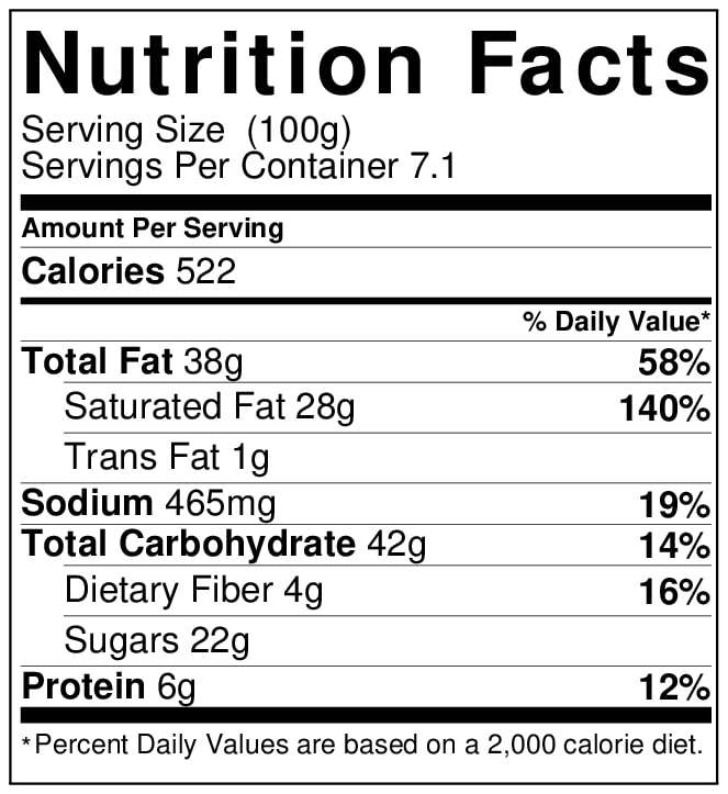 Carrot, apple, eggs, raw coconut sugar*, cold-pressed coconut oil*, walnut, orange juice, orange zest, raisin, garbanzo bean flour, potato starch, tapioca flour, white sorghum flour, fava bean flour, ginger powder, cinnamon, gluten-free baking powder, gluten-free baking soda, cream cheese, butter (*certified organic)