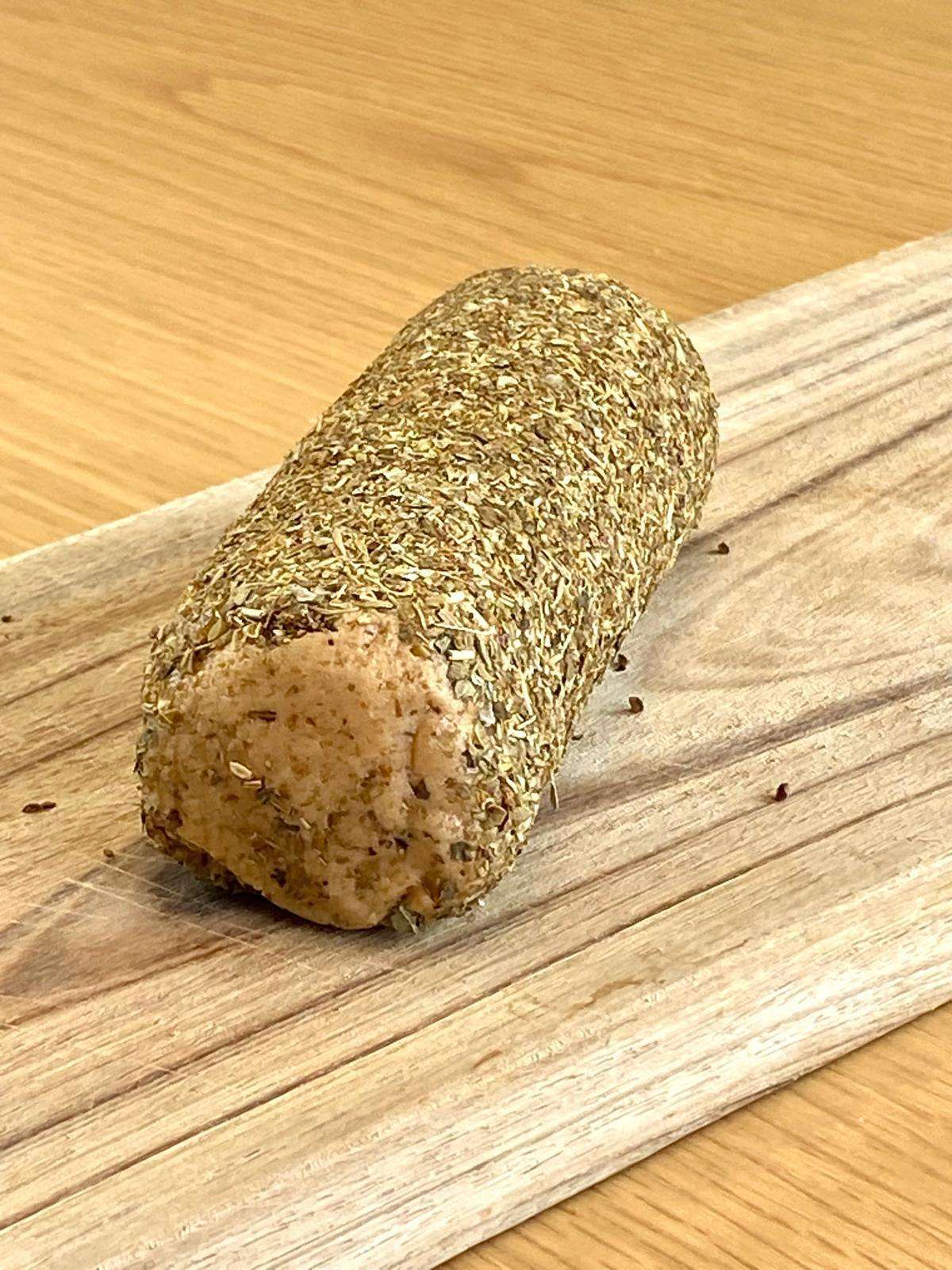 Log style, mellow but umami flavour slightly grainy texture , highlighted by the dry herbs from South of France.