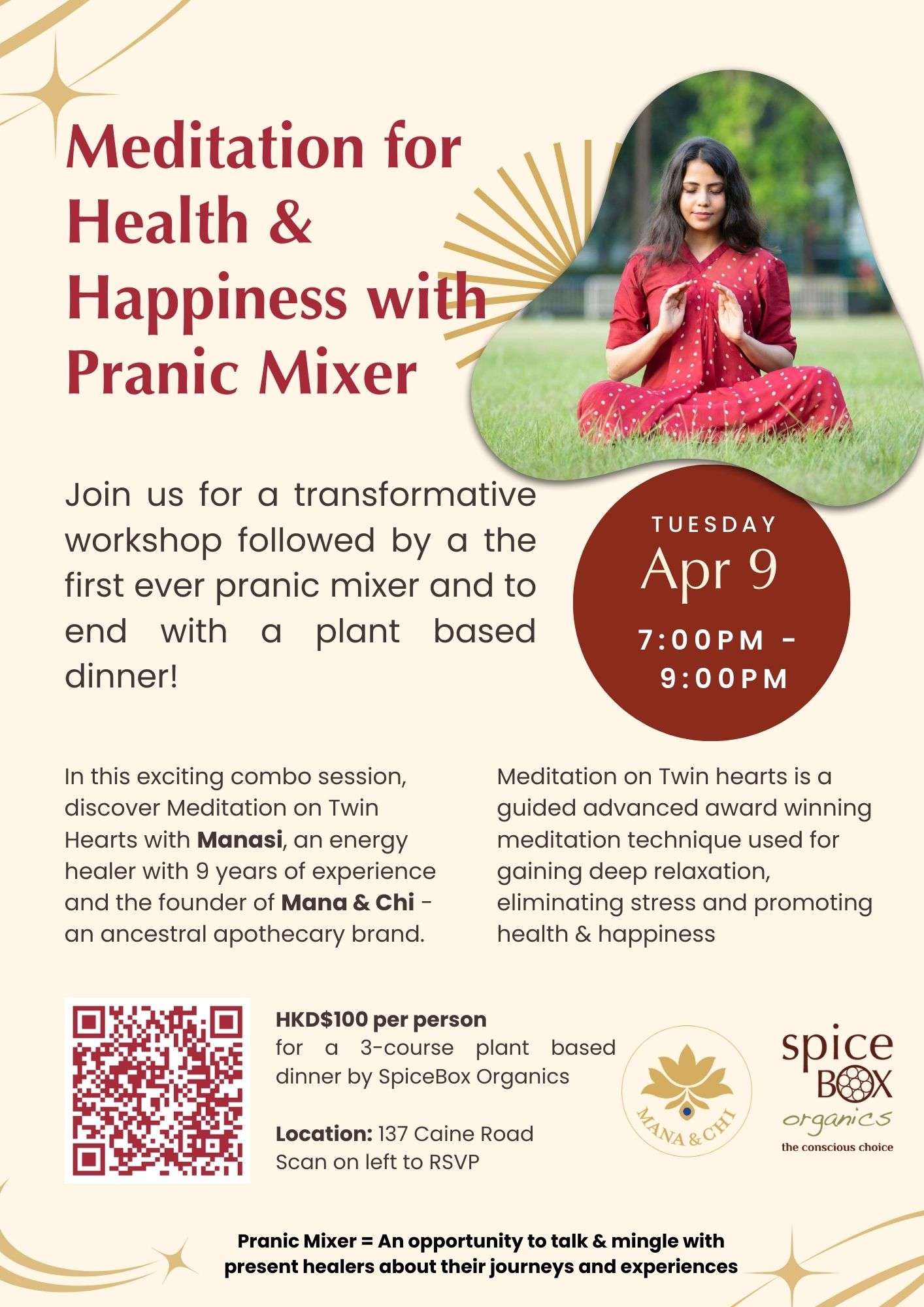 Join us for a transformative workshop followed by a the first ever pranic mixer and to end with a plant based dinner!